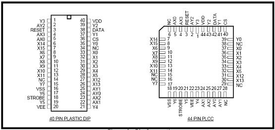 AT8816采用最先進(jìn)的小工藝ISOCMOS制造工藝,功耗低,可靠性高,隔離度好。該電路包含8×16個模擬開關(guān)陣列,7128個地址譯碼和鎖存電路。通過不同的地址信號,可以對128個開關(guān)尋址。DATA端口輸入邏輯電平“1或“0,可對模擬開關(guān)打開或關(guān)閉。模擬信號范圍從VDDVEE。還可以通過芯片CS,允許對芯片開關(guān)陣列擴(kuò)展。采用PLCC-44/DIP-40封裝。