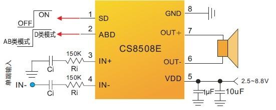 當(dāng)前位置:首頁->產(chǎn)品展示->功放IC->CS8508E(AB類/D類切換8W單聲道音頻功放IC) |