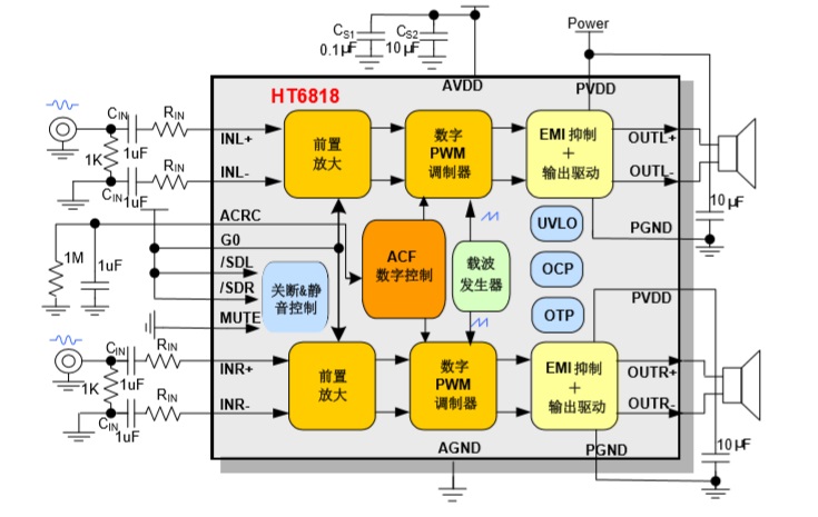 具有任意配置限幅功能的10W單聲道高保真D類音頻功放IC,永不失真 |