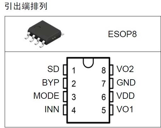 ESOP-10內(nèi)置無電感電荷泵升壓5W防破音單聲道音頻功放IC |