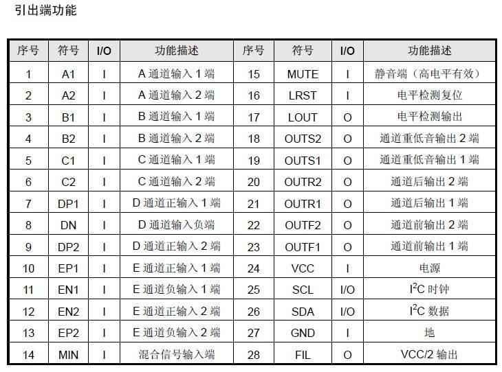 包括立體聲輸入端選擇模塊,準(zhǔn)差分輸入選擇模式及全差分輸入選擇模式;內(nèi)置輸入增益控制模塊,主音量控制模塊,響度控制,5 通道音量調(diào)節(jié)器,為重低音通道設(shè)置低通濾波器,內(nèi)置混合信號輸入端。優(yōu)化的開關(guān)控制特性,可以大大減少開關(guān)噪聲,很容易被微機(jī)控制,保證了高質(zhì)量的汽車音響系統(tǒng)。 |