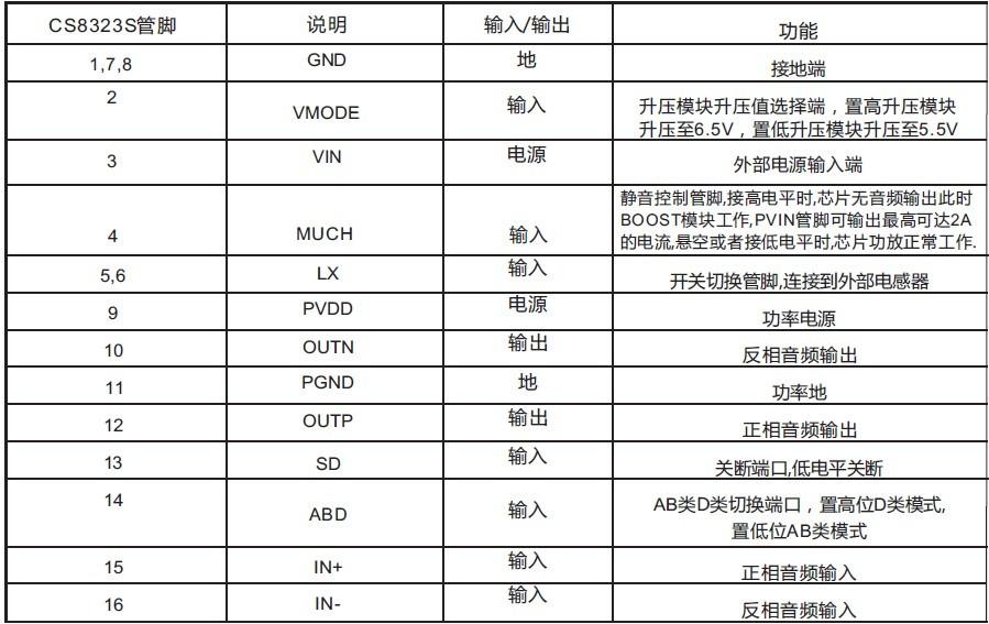 恒定4.8W/2.5V-5.5V(內(nèi)置自適應(yīng)Charge Pump模塊)/4Ω |