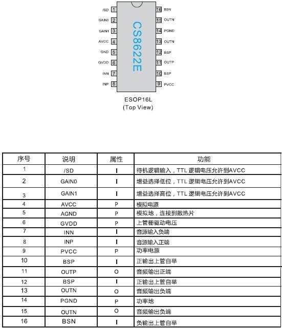 擴(kuò)頻功能、低空載電流、40倍增益、免濾波、2X23W/33W(PBTL) D類(lèi)音頻放大器 |
