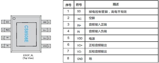 ESOP-10內(nèi)置無電感電荷泵升壓5W防破音單聲道音頻功放IC |