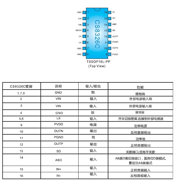 擴(kuò)頻模式,靜音功能,三種防破音模式,AB/D切換,內(nèi)置升壓,18W單聲道音頻功放 |