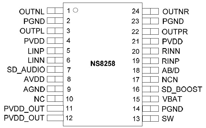 恒定4.8W/2.5V-5.5V(內(nèi)置自適應(yīng)Charge Pump模塊)/4Ω |