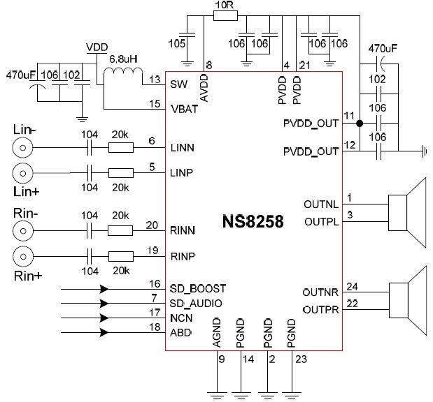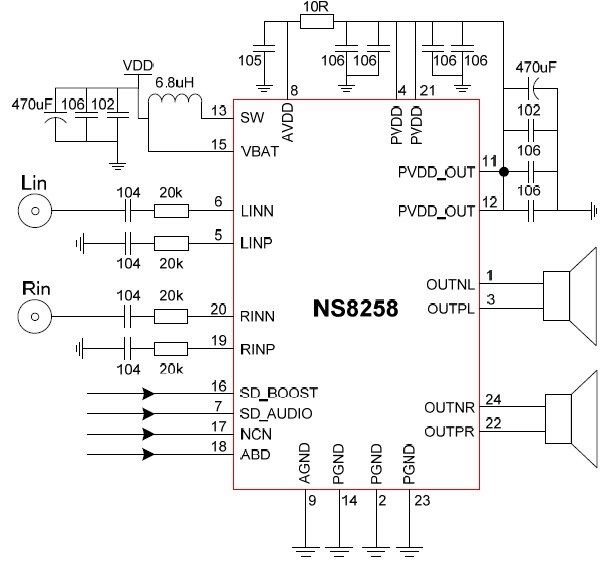 2X8.5W/2.7V-5.5V(內(nèi)置自適應(yīng)升壓模塊)/4Ω |