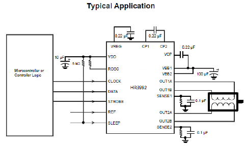 HR3979是一種新近開發(fā)出來、專門用于雙極步進(jìn)電機(jī)的微步進(jìn)電機(jī)驅(qū)動(dòng)集成電路,能驅(qū)動(dòng)馬達(dá)以全、1/2、1/4及1/16步進(jìn)操作,其內(nèi)部集成了步進(jìn)和直接譯碼接口、正反轉(zhuǎn)控制電路、雙H橋驅(qū)動(dòng),單路輸出額定值達(dá)到35V、±2.5A。 |