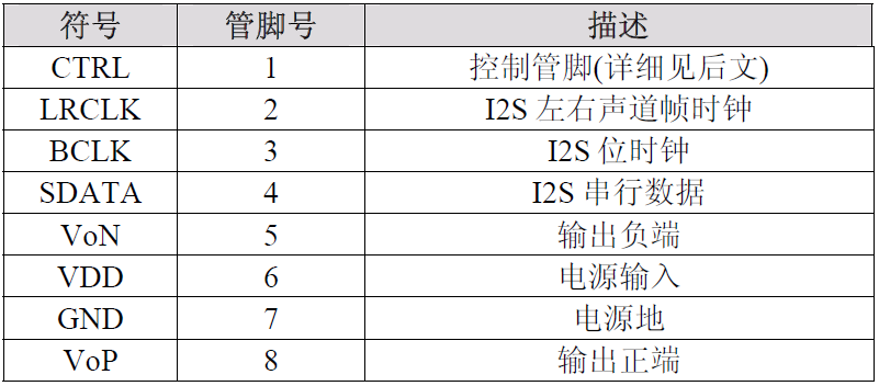 2.8W I2S輸入單聲道D類音頻功率放大器 |