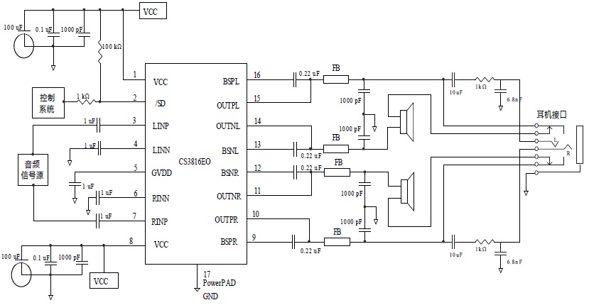 當(dāng)前位置:首頁->產(chǎn)品展示->功放IC->CS3816(無電感15W立體聲D類音頻功放IC) |