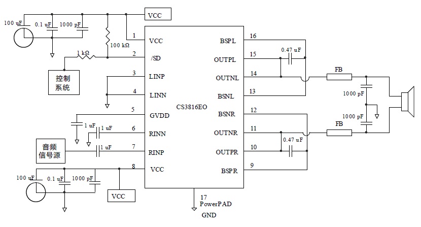 CS3816(無電感15W立體聲D類音頻功放IC) |