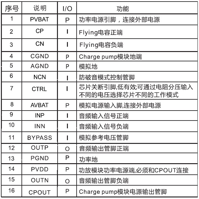 5.2W/2.8V-5.5V(內(nèi)置電荷泵無電感升壓模塊)/4Ω |