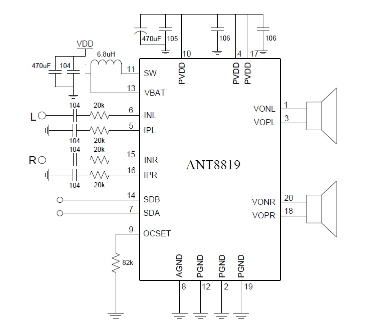 恒定4.8W/2.5V-5.5V(內(nèi)置自適應(yīng)Charge Pump模塊)/4Ω |