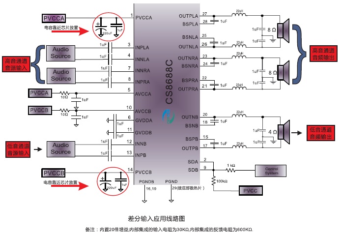 可使用單面PCB、免濾波、30W單聲道D類音頻功放IC,管腳兼容CS8622 |