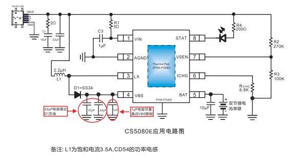 本。CS5256E轉(zhuǎn)換器具有2A的充電電流能力,充電電流可以通過(guò)外部電阻靈活可調(diào), 充電效率可以達(dá)到