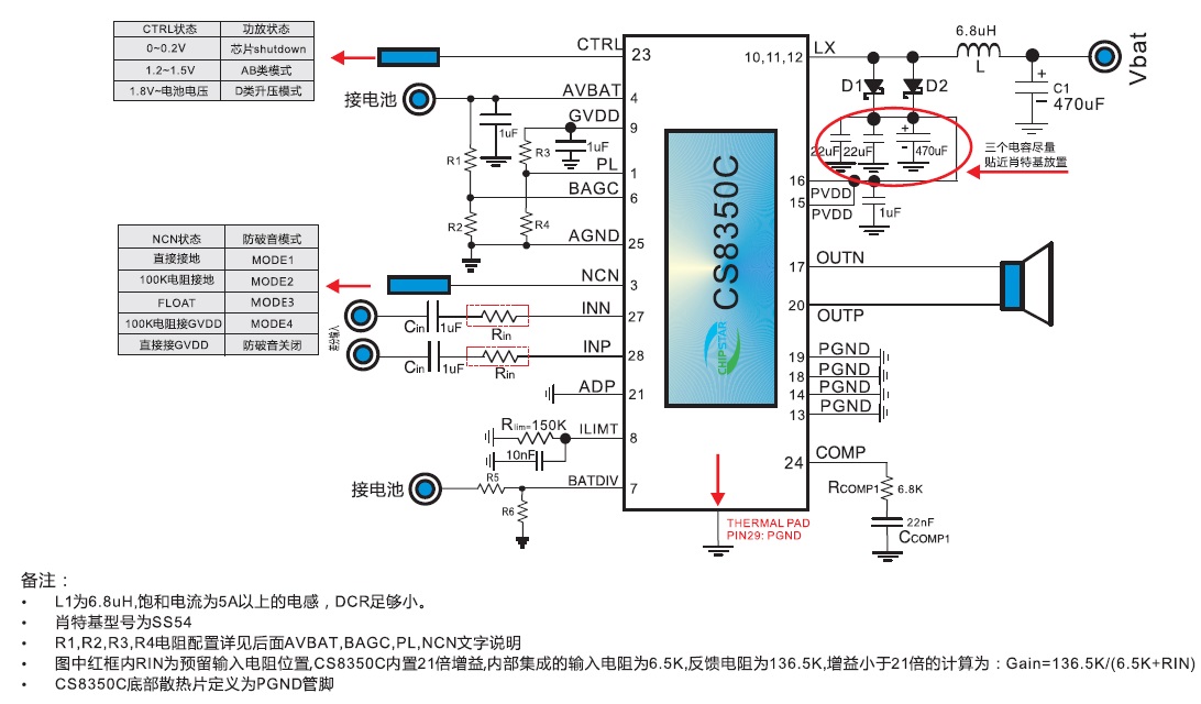 CS8350(內(nèi)置升壓、AB/D切換、防破音、單節(jié)鋰電3.7V供電恒定10W輸出功率單聲道功放IC) |