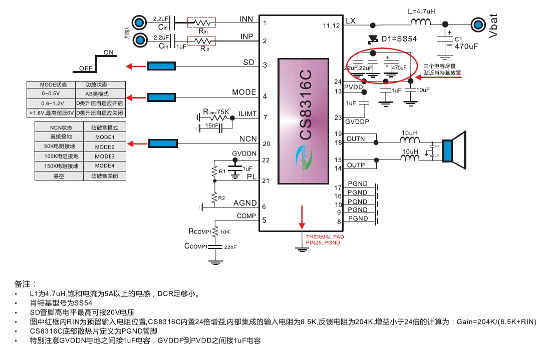 CS8316(雙節(jié)鋰電池7.4V供電內(nèi)置升壓、防破音、AB/D切換、恒定單聲道25W音頻功放IC) |