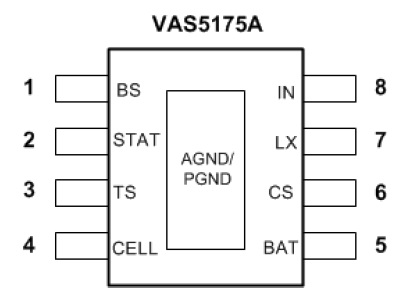 VAS5175H 是一款5V-24V 輸入,開關降壓型1節(jié)4.35V/2節(jié)8.7V鋰離子/聚合物電池充電芯片, 以高精度調節(jié)2A 充電電流,和電池電壓。它密切監(jiān)測電池組的溫度只在設置安全溫度范圍下允許充電,還提供電池檢測、預充電調節(jié)、充電飽充和充電狀態(tài)指示等功能。 |
