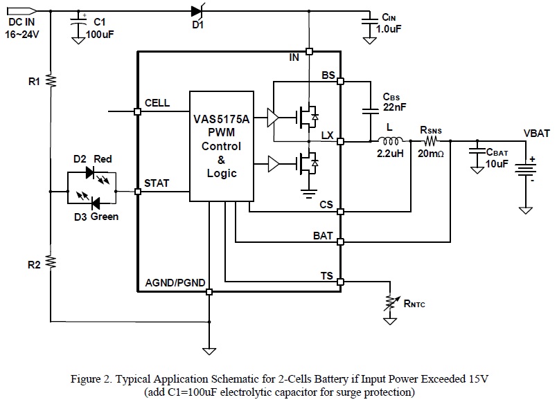 VAS5176 是一款8.5V-24V 輸入,高度集成的開關型鋰離子/聚合物電池充電管理芯片, 以高精度調節(jié)2A充電電流,和電池電壓。 |