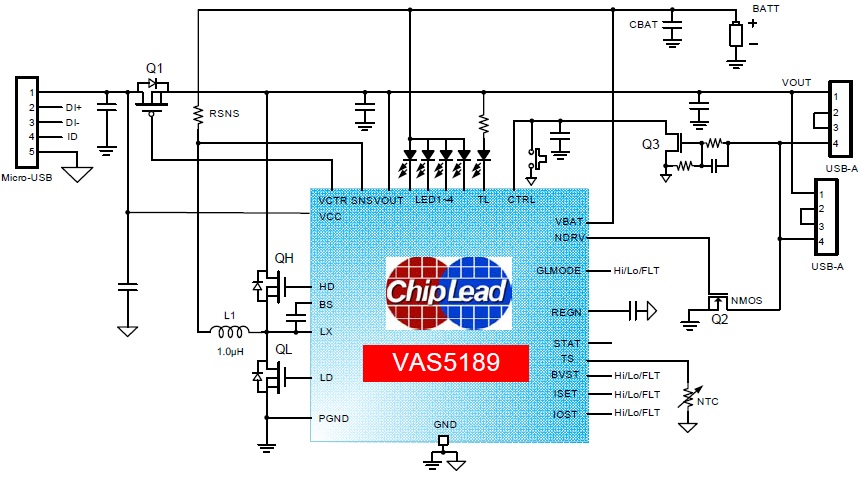 VAS5189是一款鋰電池充電管理與升壓DC/DC的單晶片專用IC,其應(yīng)用時僅需極少的週邊器件,有效降低BOM 成本,適用于單節(jié)鋰離子/鋰聚合物電池的移動電源充放電管理。 |