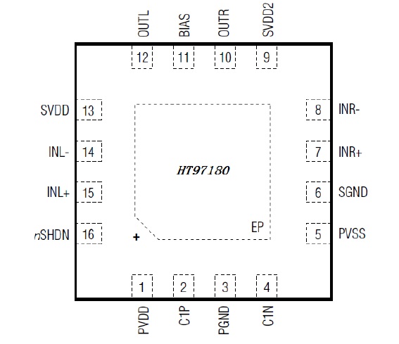 當(dāng)前位置:首頁(yè)->產(chǎn)品展示->功放IC->HT97180(1.6V超低電壓、無POP聲、免電容差分輸入125mW立體聲G類耳機(jī)放大IC) |