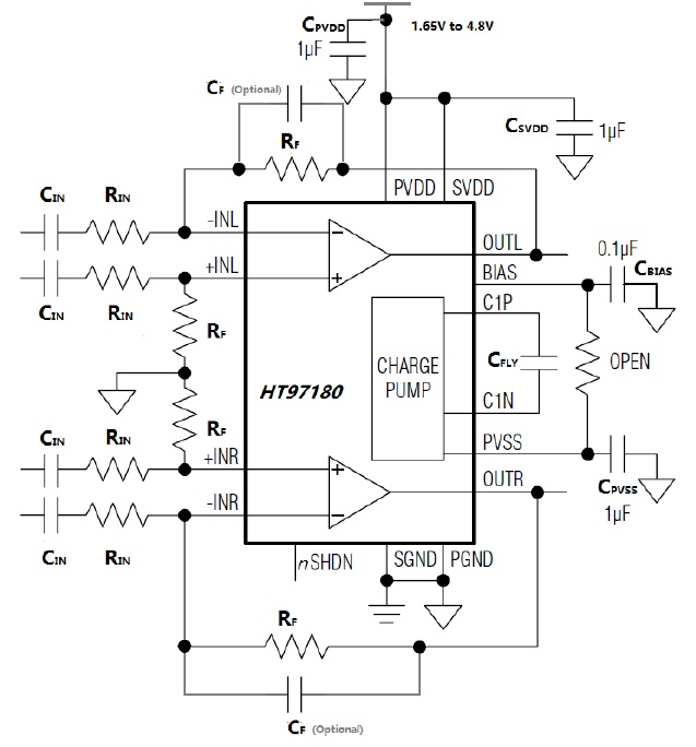 HT97180(1.6V超低電壓、無POP聲、免電容差分輸入125mW立體聲G類耳機(jī)放大IC) |