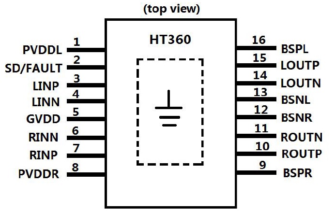 HT360(無電感2X20W立體聲D類功放IC) |