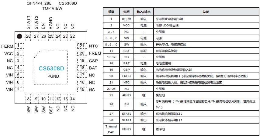 CS5305E是一款28V耐壓,單節(jié)鋰電池或鋰離子聚合物電池的降壓型 充電管理IC。 |