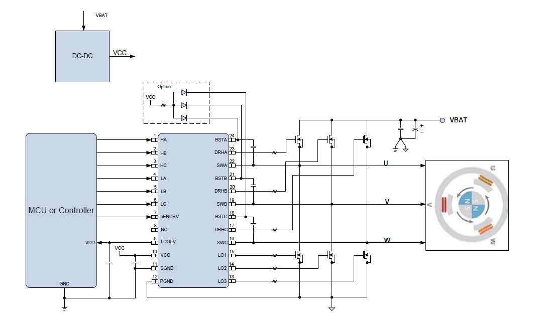18V、3A三相無刷無感驅(qū)動(dòng)、180˚正弦,集成驅(qū)動(dòng)算法+預(yù)驅(qū)+MOS |