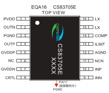 CS83705E提供了纖小的的EQA16L封裝形式供客戶(hù)選擇,封裝尺寸和ESOP8一致 ,其額定的工作溫度范圍為-40℃至85℃。