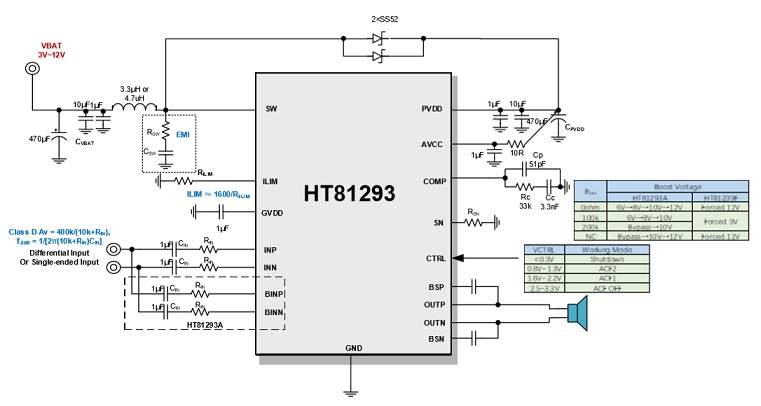 內(nèi)置自適應同步升壓和防破音功能的3W全頻段D類及AB類音頻功率放大器 |