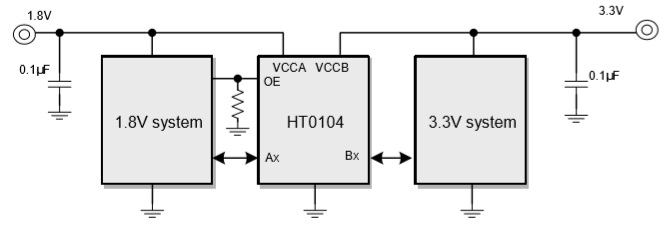 HT0104是一款4路雙向電平轉(zhuǎn)換器,其使用兩個(gè)獨(dú)立的供電VCCA和VCCB。 |