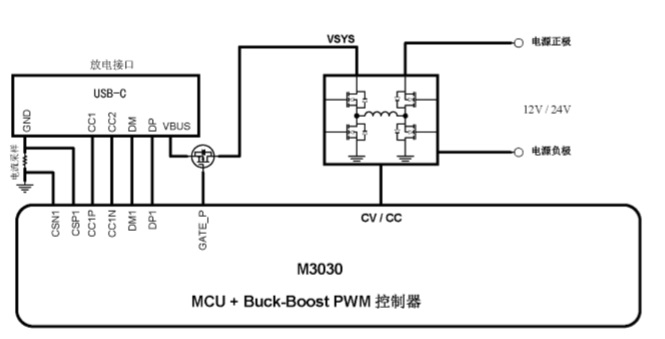 M3030 是一款面向車載充電器應(yīng)用的電源管理SOC,集成了雙向升降壓電壓變換器、16位高精度ADC、USB Type-C 接口、MOSFET 驅(qū)動(dòng)接口,兼容BC1.2 DCP、PD3.0/PPS、QC2.0、QC3.0、AFC、FCP、APPLE 2.4A 等流行的快充協(xié)議,支持過壓保護(hù)、過流 保護(hù)等完備的安全保護(hù)機(jī)制。 外圍僅需很少的元件,即可組成33W的車載充電器應(yīng)用方案