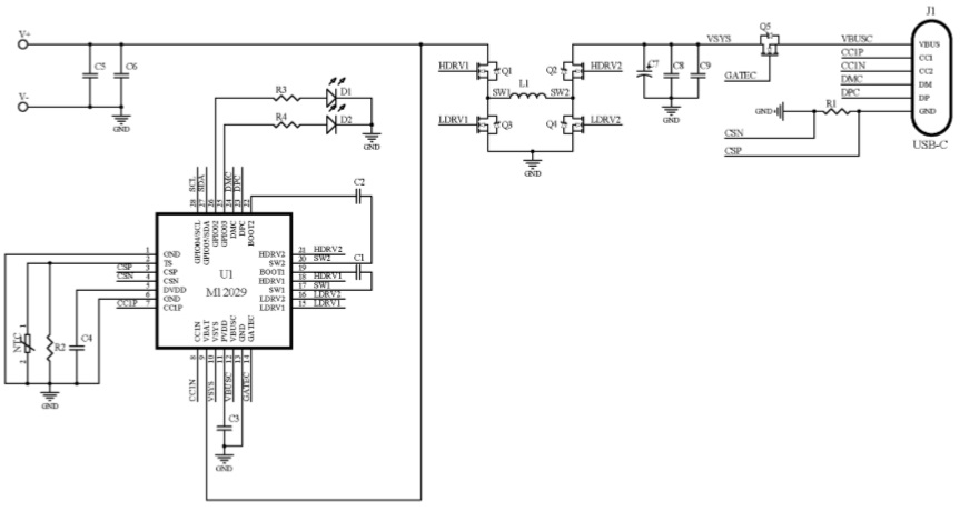 M12150是一款支持PD3.1的雙口全兼容快充協(xié)議IC,集成了微處理器、USB Type-C 接口、快充協(xié)議控制器、高精度電流采樣電阻,支持DFP/Source功能。利用TL431和光耦組成的反饋電路調(diào)整前級(jí)AC-DC的輸出電壓,搭載極少的元件可以組成C口協(xié)議調(diào)壓、A口降壓的 C+A獨(dú)立雙口功率可分配的快充解決方案。 |