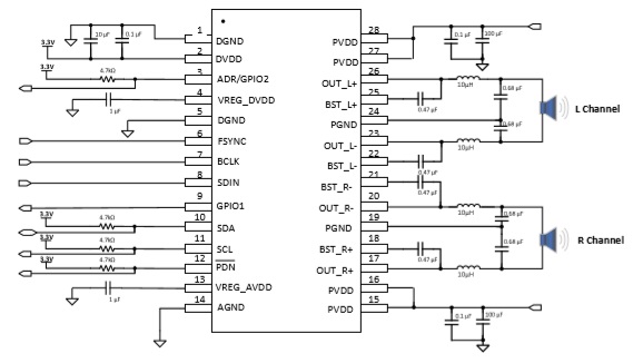 33W立體聲/ 66W單聲道、數(shù)字輸入D類音頻功放芯片 |
