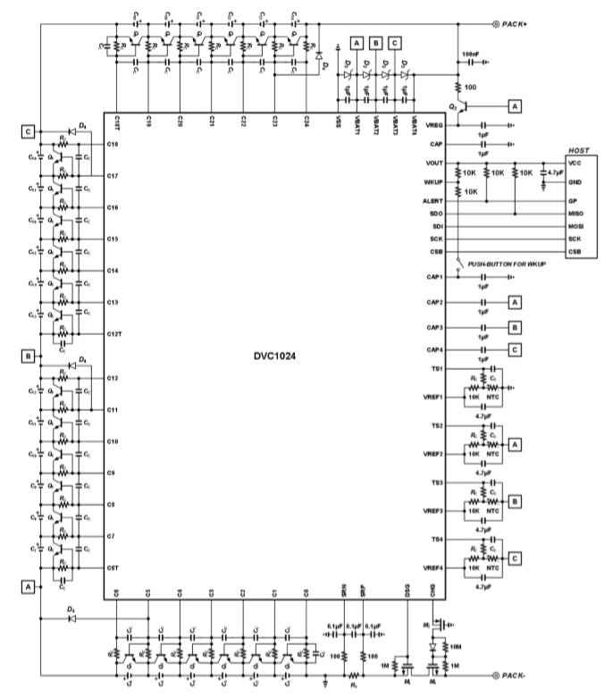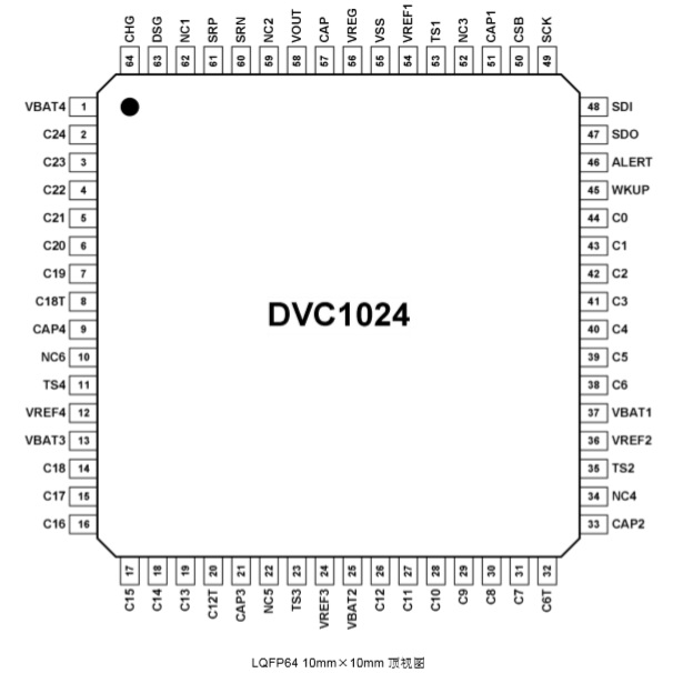 DVC1024是一款采用車規(guī)級(jí)高壓BCD工藝設(shè)計(jì)的12-24節(jié)鋰電池組監(jiān)控芯片,通過(guò)四線式SPI接口與上位機(jī)進(jìn)行通信,形成一套完整的電池組管理系統(tǒng)(BMS)。