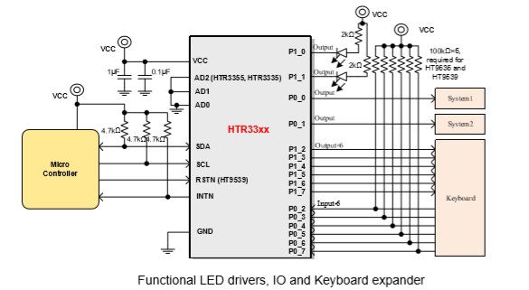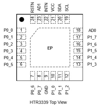 HTR3339是一款I(lǐng)2C和SMBus IO擴展器 , 2.2V~5.5V電源供電。16個IO端口中的任何一個都可以單獨配置為輸入或輸出。此外,任一IO可驅(qū)動LED。