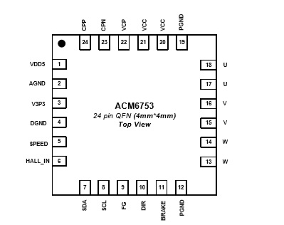 ACM6732是一款三相無(wú)刷直流電機(jī)驅(qū)動(dòng)芯片,內(nèi)部集成無(wú)感三相無(wú)刷電機(jī)驅(qū)動(dòng)算法、相電流檢測(cè)電流電路、柵極驅(qū)動(dòng)電路以及功率MOS 管. 支持最大2.4A的相電流. ACM6732 的高集成度以及精簡(jiǎn)外圍特別適用于高功率密度、小尺寸、靜音要求高的三相無(wú)刷電機(jī)驅(qū)動(dòng)器應(yīng)用場(chǎng)