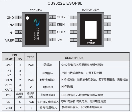CS9022E是為多節(jié)電池供電系統(tǒng)而設(shè)計(jì)的單通道低導(dǎo)通電阻直流電機(jī)驅(qū)動(dòng)集成電路,工作電壓范圍5-16V;持續(xù)電流6A,峰值12A |