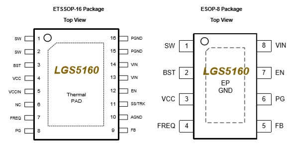 LGS5160具有低阻值130mΩ高側和95mΩ低側功率管, 可提供至少2.5A的輸出電流能力,具有出色的負載和線路瞬態(tài)響應。