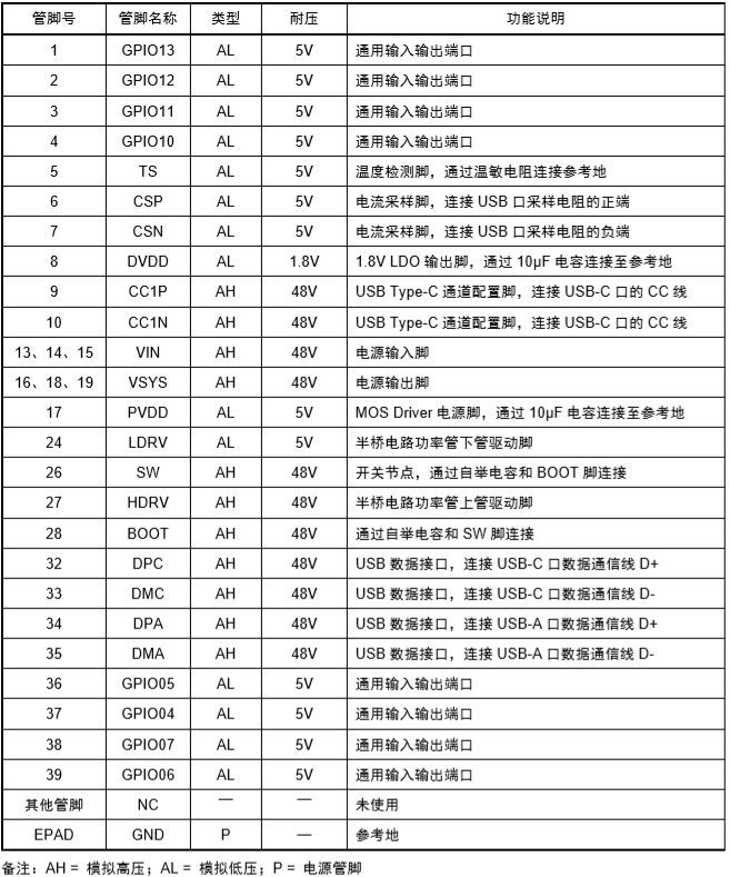 2-4節(jié)電池快充充電管理SOC ,內(nèi)置PD3.0、PD2.0、QC3.0、QC2.0、BC1.2 DCP、UFCS等協(xié)議 |