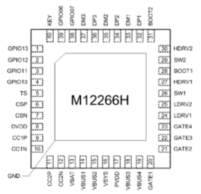 M12269是一款面向3-8串電芯大功率移動(dòng)電源應(yīng)用的專用SOC,集成了同步升降壓電壓變換器、電池充放 電管理模塊、顯示模塊、電量計(jì)算模塊,提供最大 140W 輸入/輸出功率,支持 PD3.1、QC3.0、AFC、FCP、 SCP、BC1.2 DCP 等主流快充協(xié)議,并提供過壓/欠壓、過充/過放、過溫等完備的保護(hù)功能。配合簡單的外圍電路,即可組成大功率多口移動(dòng)電源管理方案。 |