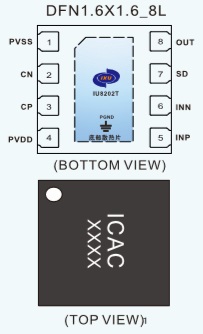 IU8202T可向16Ω負載提供高達400mW輸出功率,THD+N僅為0.006%。217Hz時具有86dB的高電源抑制比( 允許該器件工作在嘈雜的數(shù)字電源,無需額外的線性穩(wěn)壓器件)。精巧的咔嗒聲抑制電路消除了啟動與關(guān)斷過程中的可聞噪聲。低功耗關(guān)斷控制,可以在混聽模式有效的節(jié)省能源。IU8202T工作電壓范圍在2.5~5.5V, 待機時僅消耗1.3mA電源電流, 具有短路保護與熱過載保護 .IU8202T封裝形式為DFN1.6X1.6_8L,其額定的工作溫度范圍為-40℃至85℃。