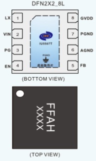 IU5507T內(nèi)置功率MOSFET,使用過壓、過流、過熱、短路等諸多保護(hù)電路,在超過控制值時會自動斷開,以保護(hù)芯片。IU5507T采用了纖小的DFN2*2_8L封裝,最低可達(dá)到小于6μA漏電,最適合在移動設(shè)備的電源內(nèi)部使用。