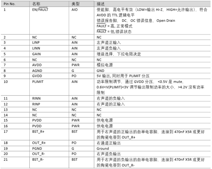 超低功耗、具有展頻和AGL功能21W立體聲/42W單聲道模擬輸入D類音頻功放IC |