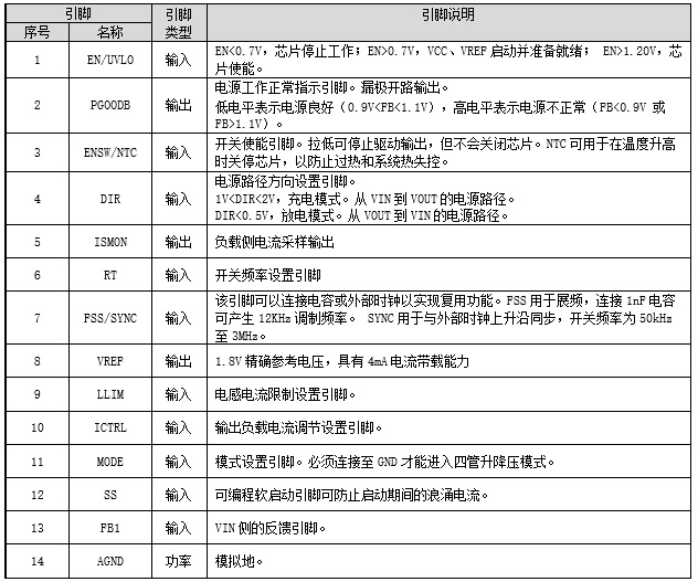 引腳配置和功能