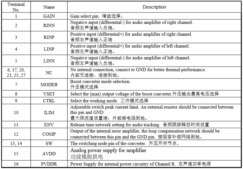 ・內(nèi)置升壓電路模式可選擇:自適應(yīng)實(shí)時(shí)音頻跟蹤升壓(可提升播放時(shí)間50%以上)、強(qiáng)制升壓;